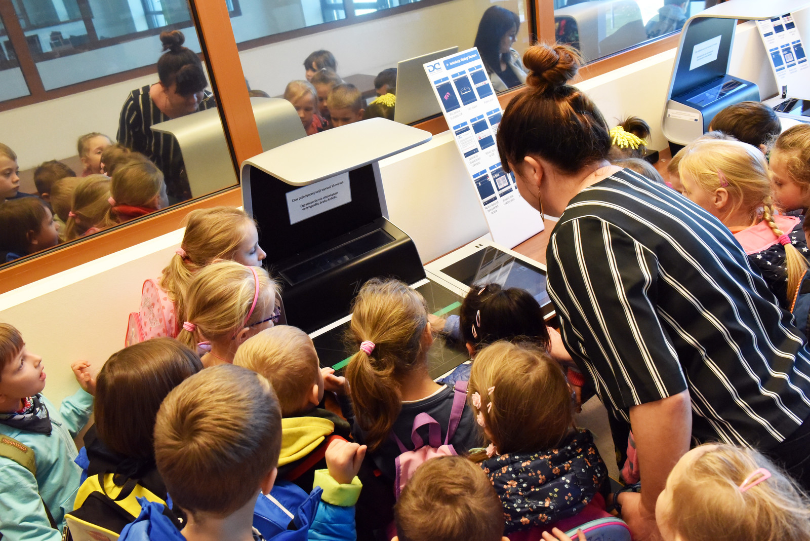 Dzieci po uczelni oprowadziła dr hab. Izabela Oleksiewicz, kierownik Zakładu Nauki o Bezpieczeństwie (Wydział Zarządzania), mama jednej z zerówkowiczów. Dzieci miały okazję zapoznania z zasobami bibliotecznych PRz oraz skorzystania z urządzeń takich jak: komputery, laptopy skanery czy kabiny z możliwością odsłuchu fonozasobów. Wszystko to było możliwe dzięki Pani Dyrektor Biblioteki dr Monice Zub i jej pracownikom.