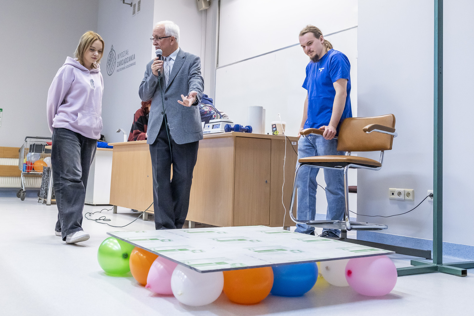 Uczestnicy wzięli udział w zajęciach „Tradycja i nowoczesność – interaktywna biblioteka” oraz w widowiskowych pokazach z fizyki przygotowanych przez Koło Naukowe „Foton” pod kierunkiem dr. hab. Tomasza Więcka, prof. PRz.