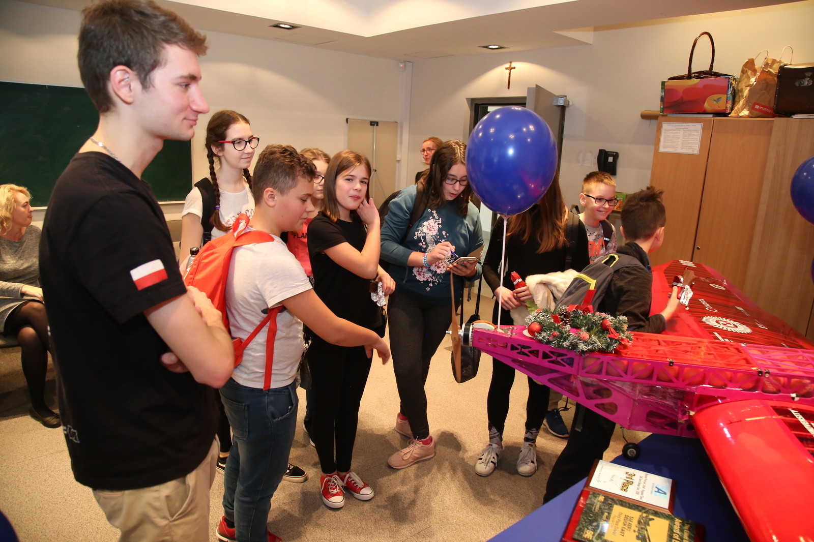 Dzieci zobaczyły model drewnianego samolotu udźwigowego, który podczas tegorocznych zawodów SAE Aero Design East w Stanach Zjednoczonych, z udziałem 75 drużyn z całego świata „wylatał” III miejsce za największy podniesiony udźwig oraz III miejsce w klasyfikacji generalnej.