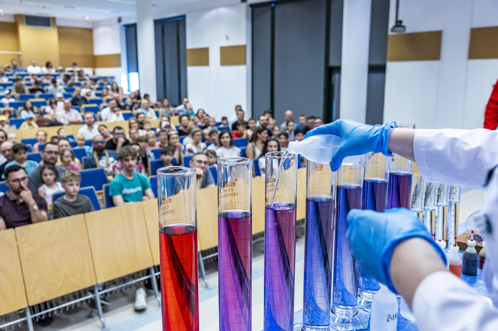 Na miłośników wybuchowych atrakcji czekali studenci Koła Naukowego „ESPRIT”, którzy przygotowali spektakularne pokazy chemiczne. Uczestnicy mogli również wysłuchać ciekawych wykładów –„Kosmiczną archeologię” opisywała Magdalena Ithilnar Stawniak, postać „Wyspiańskiego – Odkrywcy” przybliżyła Jolanta Bobala, a o „Prompt engineering, czyli jak dogadać się ze sztuczną inteligencją?” opowiedział Marcin Krawczyk. Mali i duzi odkrywcy spotkali się również z Magda „Cathia” Kozłowska zabrała małych i dużych odkrywców w podróż po galaktyce w ramach prelekcji nt. „Gwiezdnowojenna droga bohatera, czyli monomit w Gwiezdnych Wojnach”. Pokazy fizyczne Koła Naukowego FOTON („Jak fizyka wprawia świat w ruch”) oraz pokazy wysokich napięć i galeria lamp plazmowych Teslacoil jak zawsze przyciągnęły tłumy widzów. Na „Noc z gwiazdami”, czyli na finałowy pokaz pikniku zaprosili Małgosia Wilczak i Paweł Pasterz wraz z gościem specjalnym Maciejem Milczanowskim.