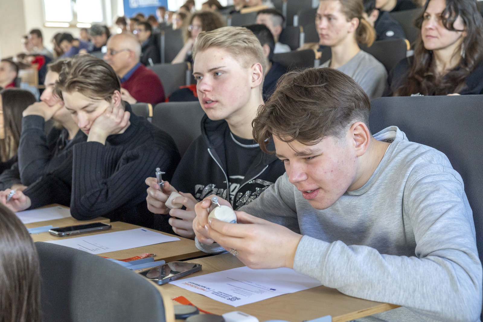 Organizatorzy zadbali również o możliwość kontaktu z przedstawicielami przemysłu. O znaczeniu inżynierii materiałowej dla przemysłu lotniczego czy motoryzacyjnego opowiedzieli absolwenci kierunku inżynieria materiałowa, obecnie pracownicy tak znanych firm, jak Pratt & Whitney Rzeszów czy BorgWarner Poland. Można było zobaczyć i dotknąć elementów konstrukcji silników lotniczych czy przekładni automatycznych stosowanych w nowoczesnych samochodach. Młodzież miała okazję dowiedzieć się, czym zajmują się inżynierowie materiałowi i na czym polega ich praca.